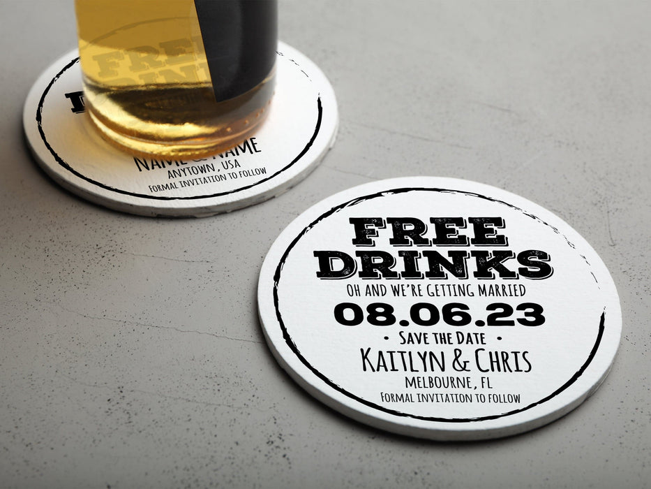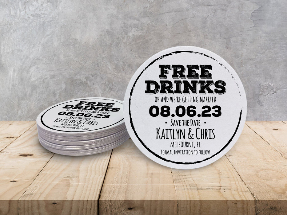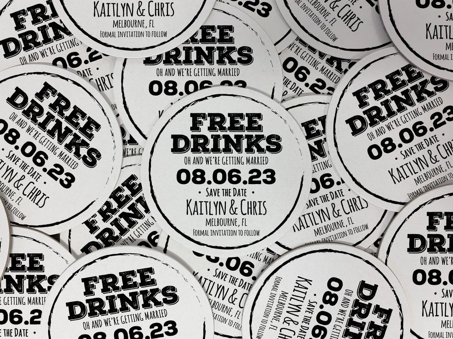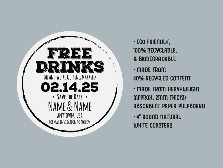 FREE DRINKS Save the Date Coasters
