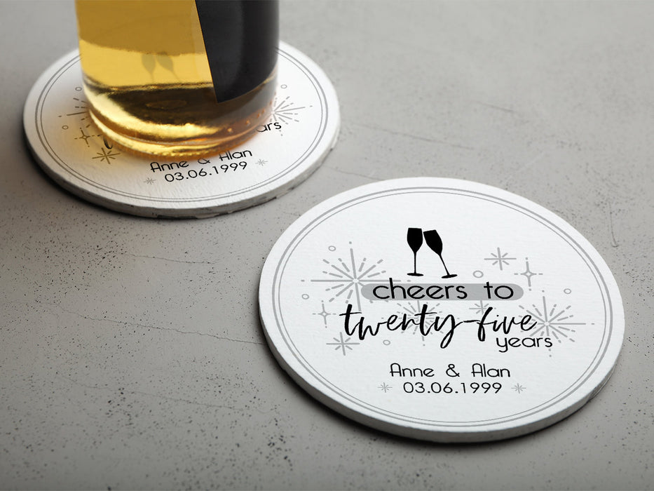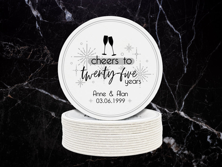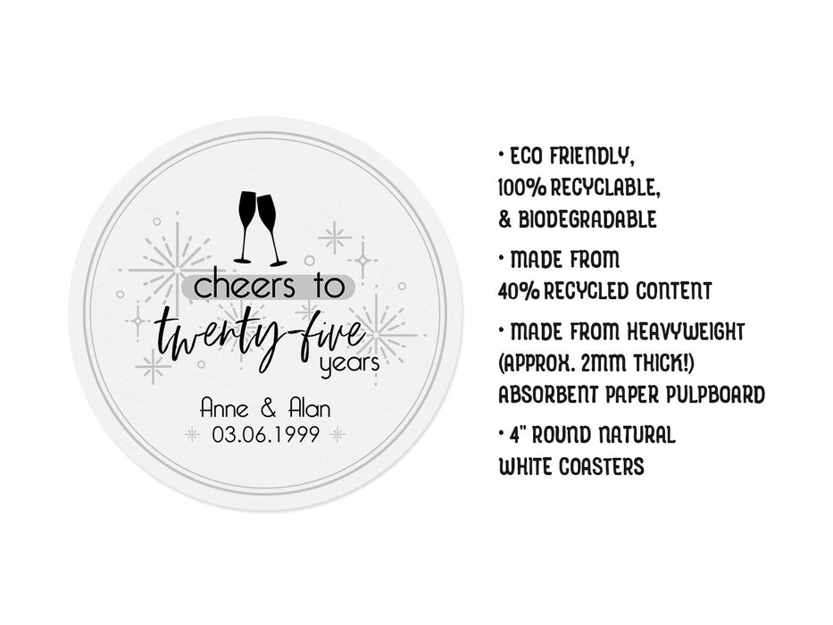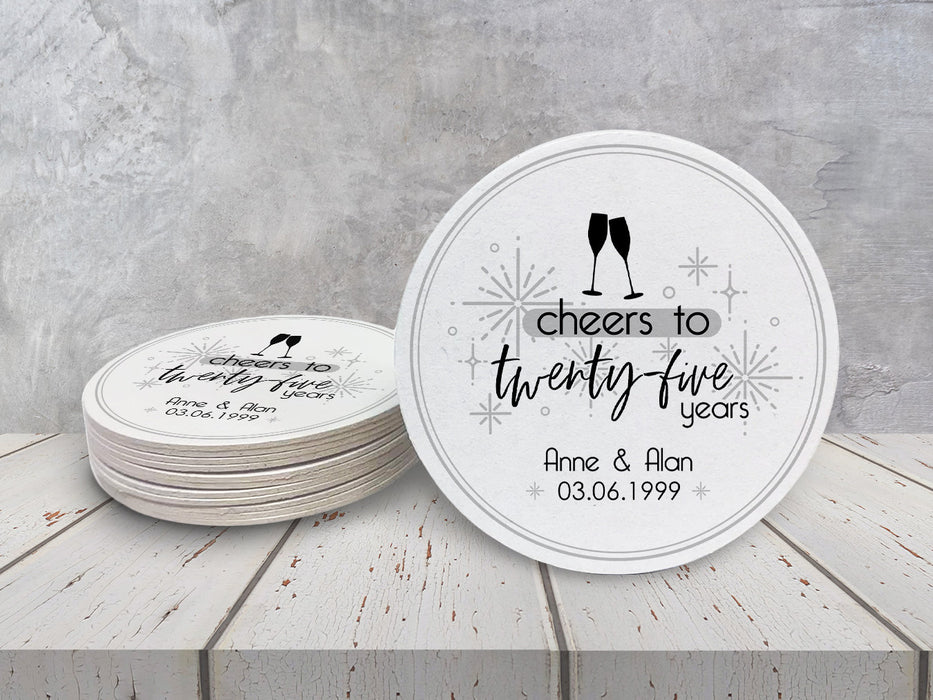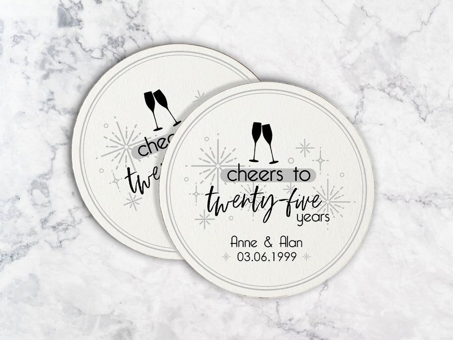 Cheers to Twenty-Five Years Wedding Anniversary Coasters