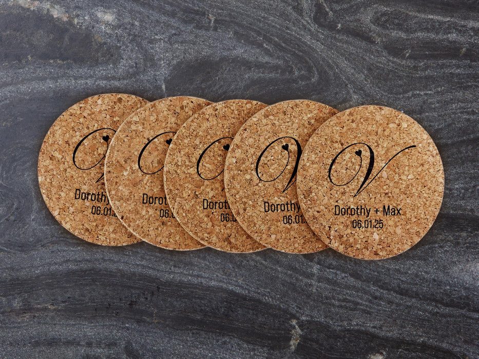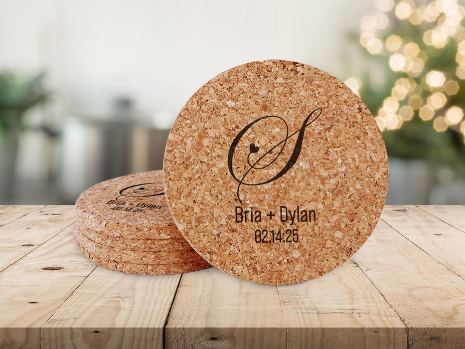 Looking for a unique and elegant decor piece to complete your wedding plans? Our personalized Heart Initial Monogram Coasters are the perfect addition! This beautiful coaster features an initial letter intertwined with a delicate heart, and the couple's name and wedding date making it the perfect symbol of love. Ideal for wedding favors, anniversary gifts, or as a unique addition to your own home, this custom coaster is the perfect way to commemorate your special day.